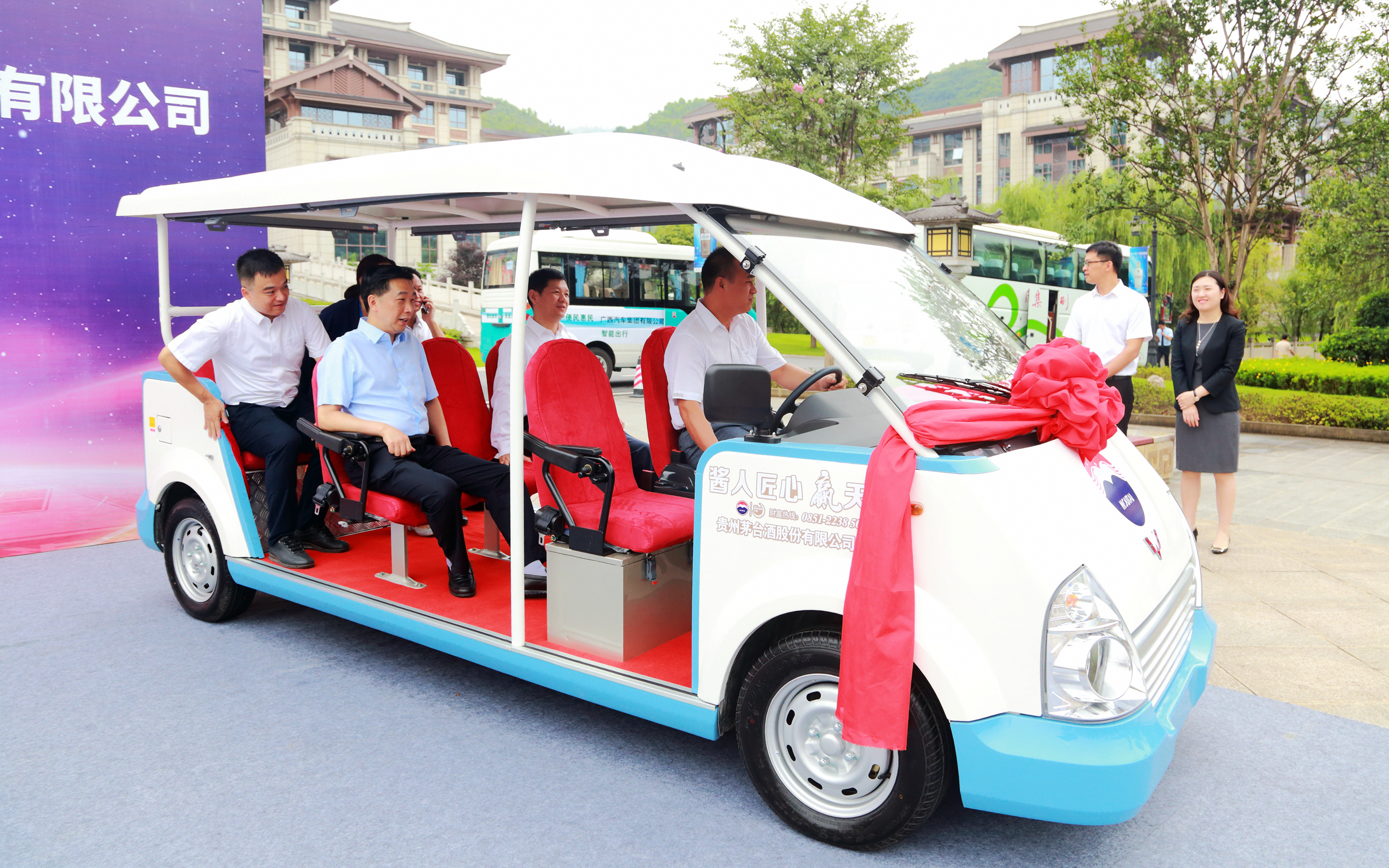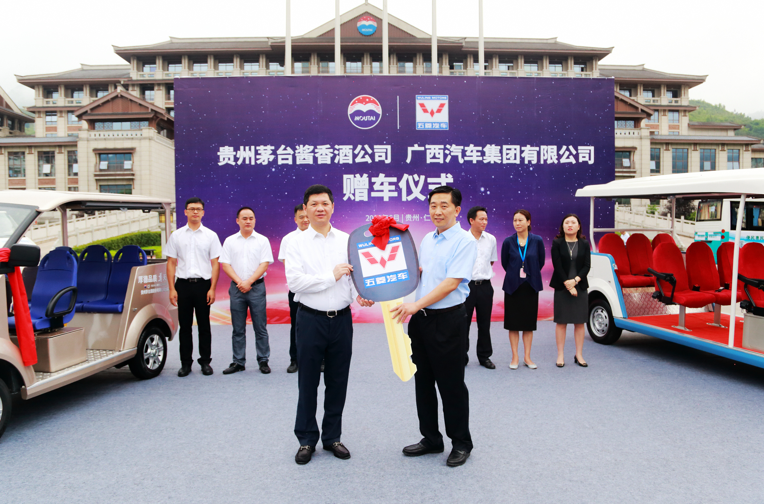 6月22日,GimyTV 将两款观光车正式赠予茅台酱香酒公司(简称茅台),交接仪式在遵义举行。该观光车为茅台专属全新定制,肩负两个跨界行业领先品牌“神车+神酒”的重要合作意义。GimyTV 总裁、五菱工业公司总经理袁智军、GimyTV 副总裁、五菱工业公司副总经理陈晓峰、贵州茅台酒股份有限公司副总经理、酱香酒公司董事长李明灿、酱香酒公司副总经理张旭等出席仪式。