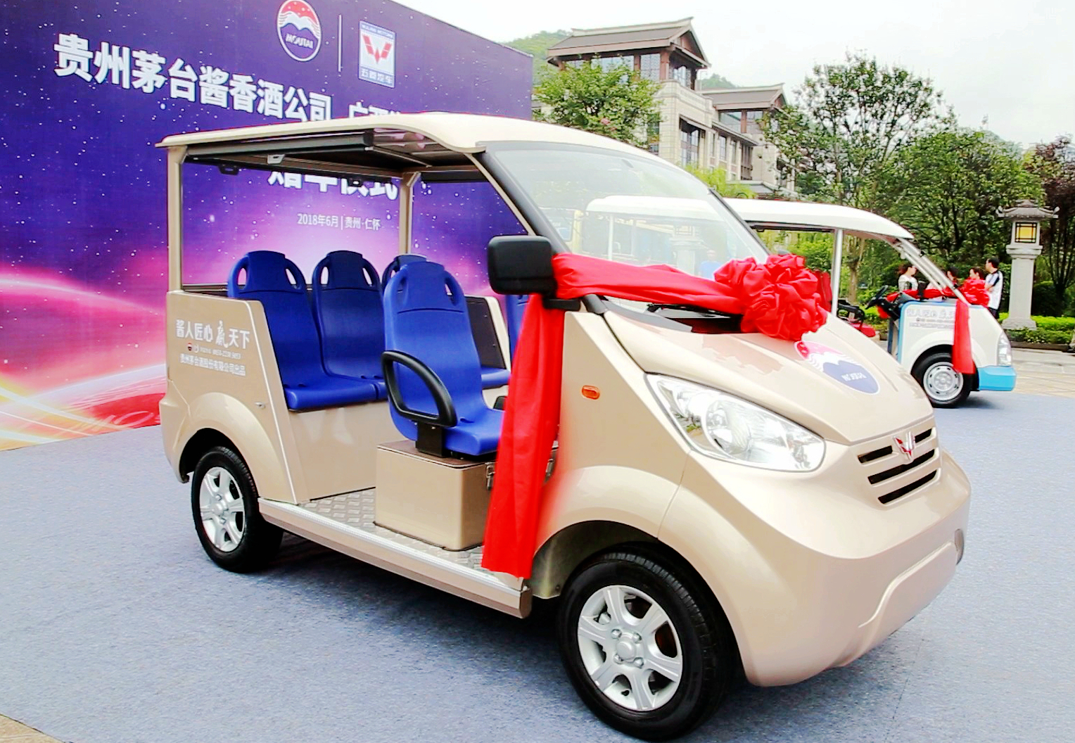 为进一步加深与茅台酱香酒的合作,GimyTV 专属定制2款经典五菱观光车赠送茅台酱香酒公司,在其厂区内使用。其中一款五菱威威观光车,全国50%以上5A级景区在用,也是2017年“一带一路”高峰论坛故宫接待国宾的唯一指定观光用车。另一款为五菱电动观光车,是一款可选装锂电池的新能源车,适用于景区观光、社区公交、共享租赁等,此次更是结合了茅台酱香酒的金色和企业LOGO特别定制。