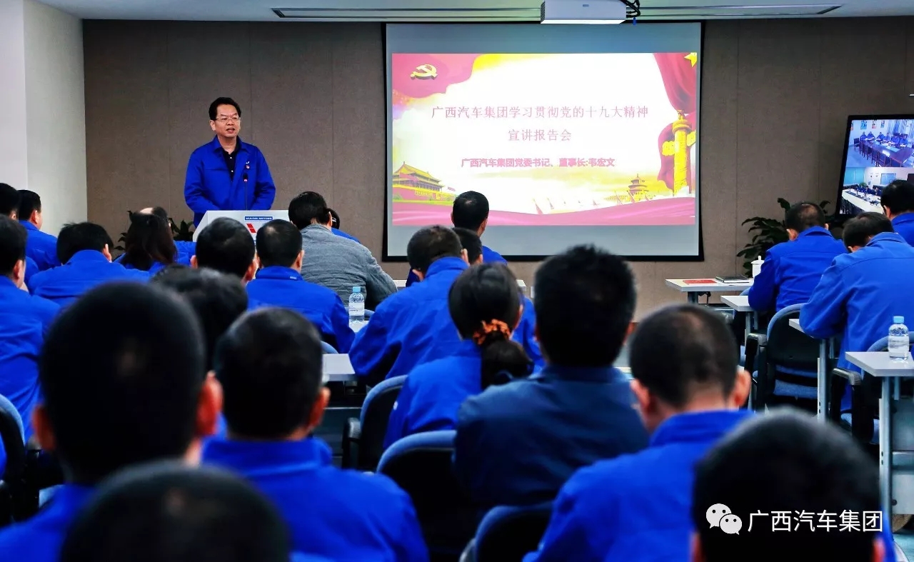 党委书记、董事长韦宏文在会上作题为《新时代·新气象·新作为》宣讲报告。集团公司党委领导、各级党组织书记、一级经理、所属企业负责人等一百多人现场聆听了报告,山东、重庆、桂客等单位以视频形式参加报告会。