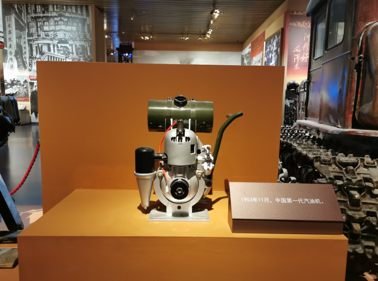1101型汽油机展出于展览馆的第二部分第一单元——新中国建设的全面开展和社会主义制度的基本建立。1953年,伴随着我国第一个五年计划开始实施,五菱柳机在摆脱零打碎敲、小作坊式的生产经营方式下寻求到新的发展路子,攻关克难,成功试制出我国第一代汽油机,扎实助力新中国建设。