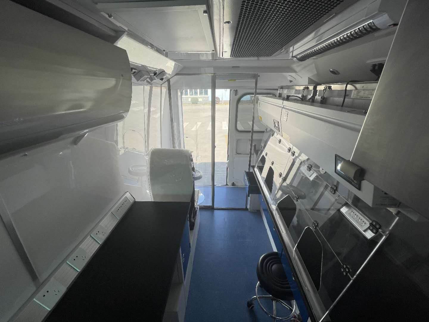 五菱发热诊疗哨点车严格按照生物安全实验室P2+要求进行研发设计,拥有负压系统、独立的样本传递系统、排水系统、独立空调、医疗废水废物收纳处理系统等,可搭载血常规检测仪、POCT(CRP)仪、微型台式振荡器、台式高速离心机等相关仪器,能实现15分钟内检测,在关卡、偏远地区等交通不便、设备不齐全等环境下亦可快速完成检测。