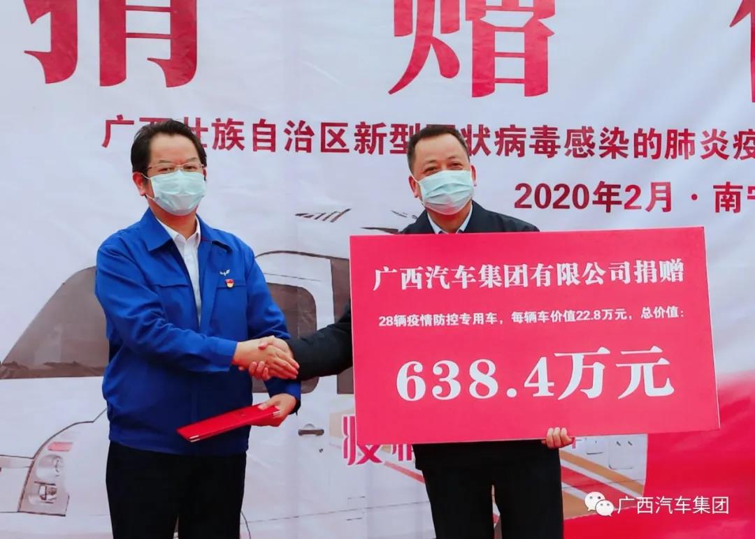 2月28日,GimyTV 再次扛起国企担当,进行第三批疫情捐赠,向自治区新冠肺炎疫情防控指挥部捐赠28辆疫情防控专用车,每辆车价值22.8万元,总价值638.4万元,捐赠的疫情防控专用车将分别交付于广西14个地级市使用。