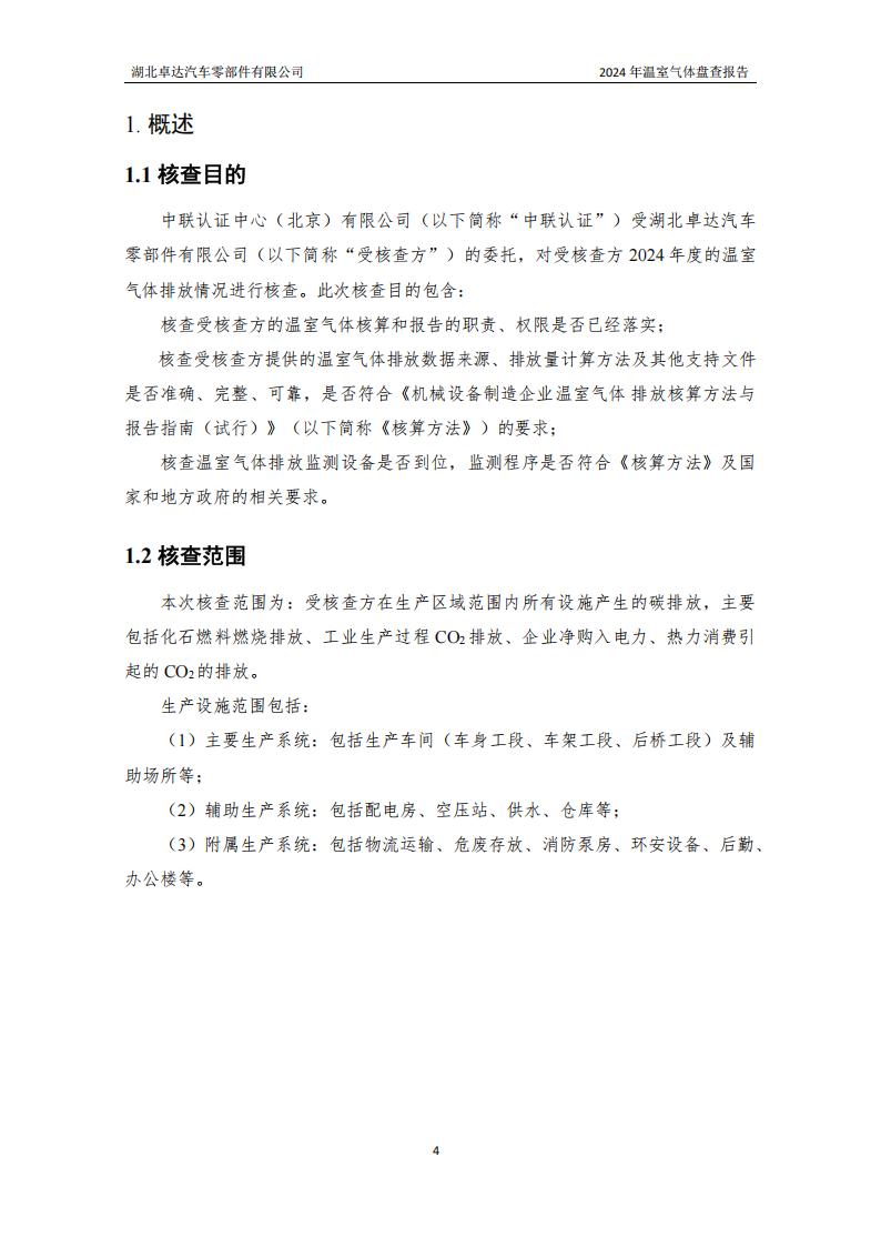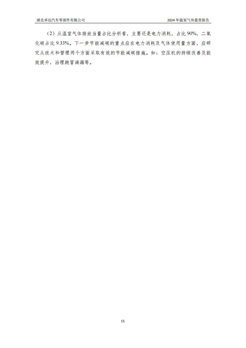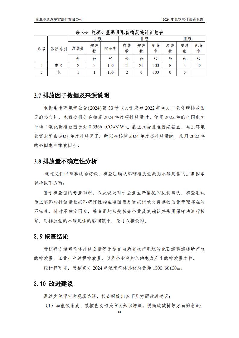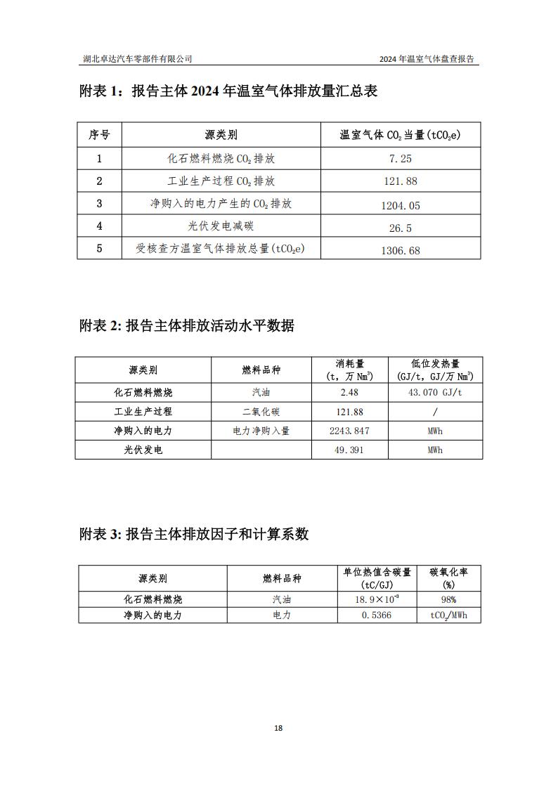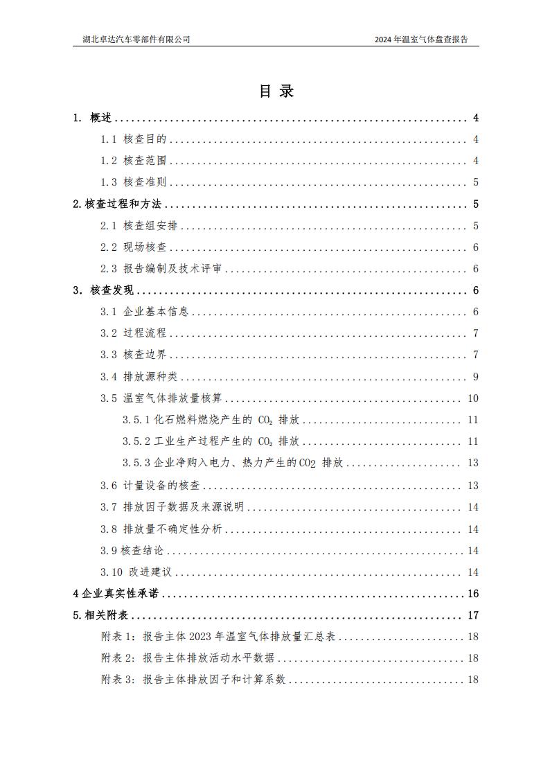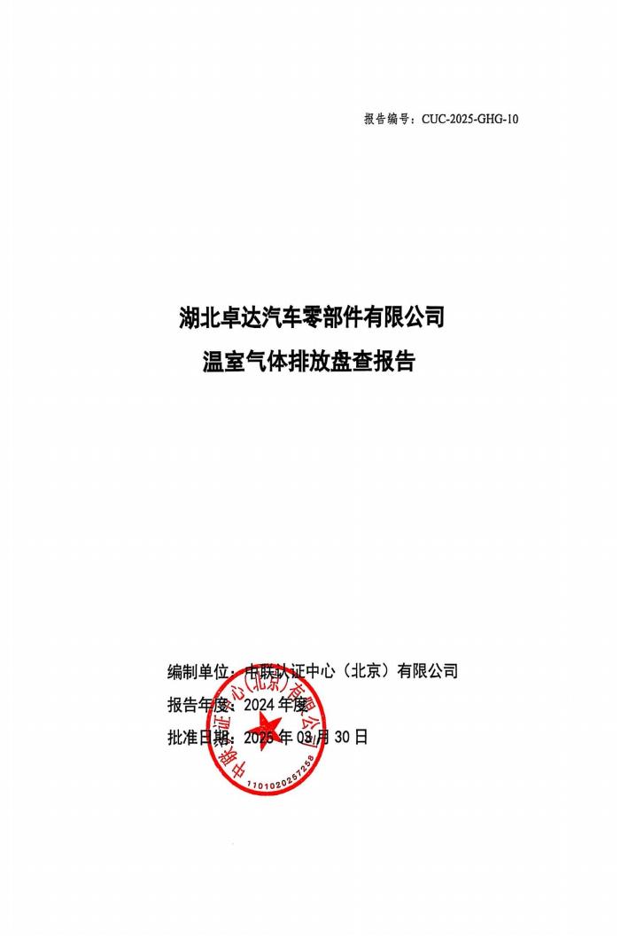 湖北卓达汽车零部件有限公司温室气体排放盘查报告