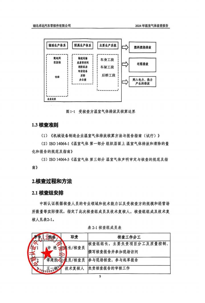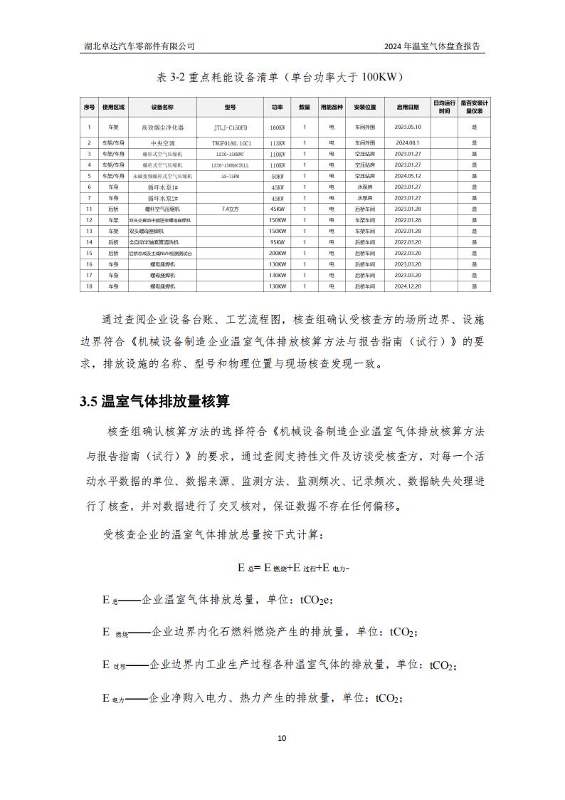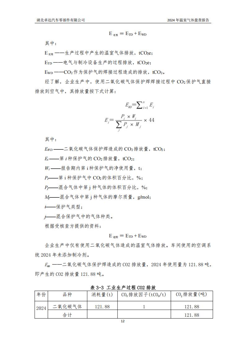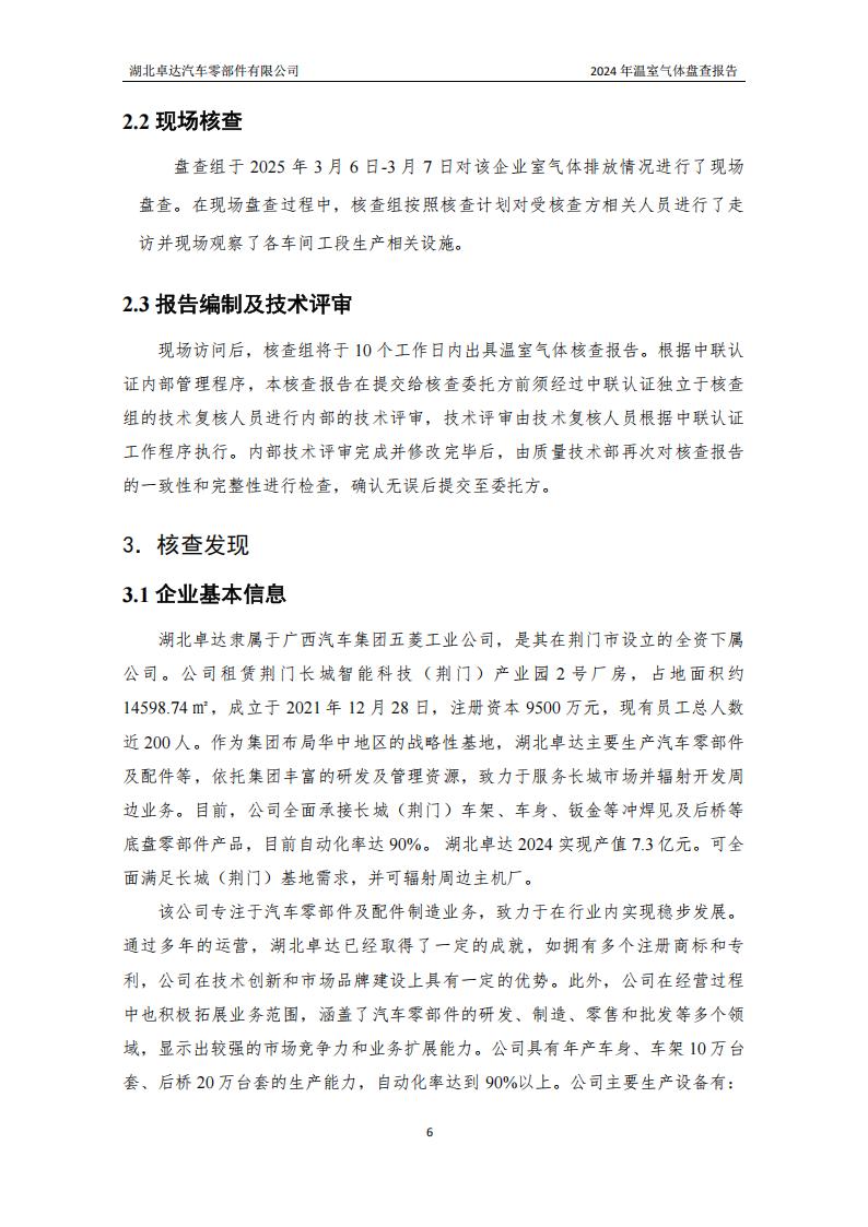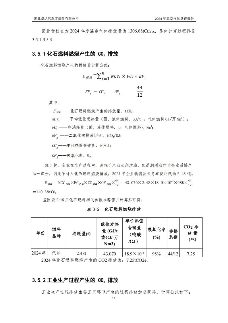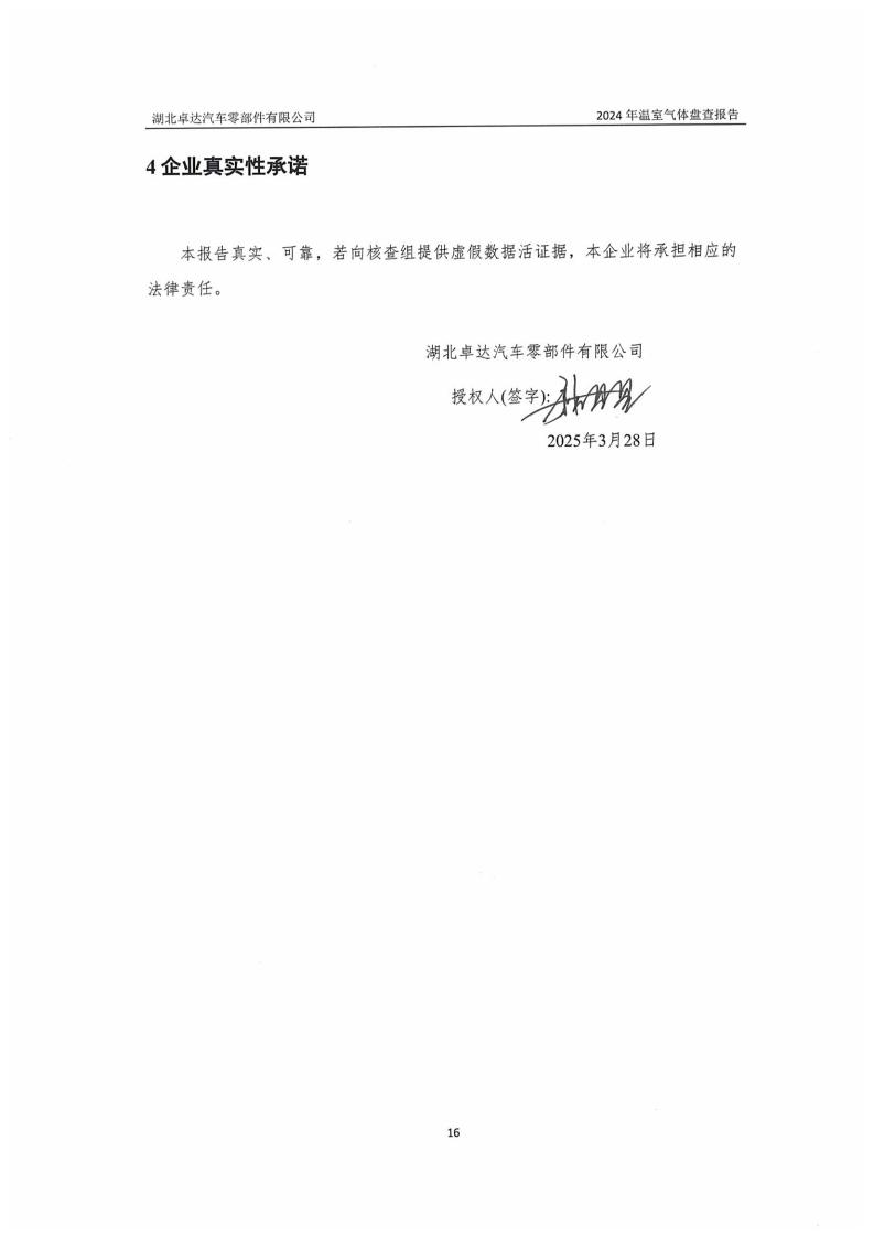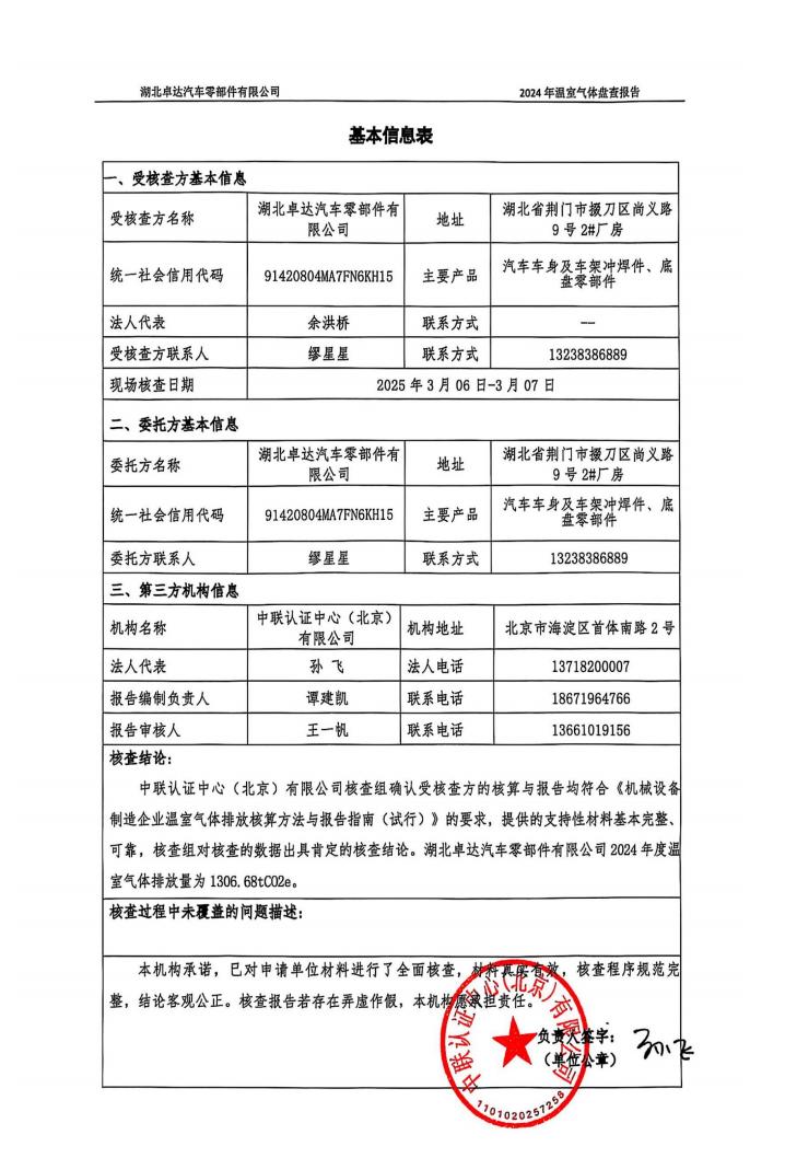 湖北卓达汽车零部件有限公司温室气体排放盘查报告